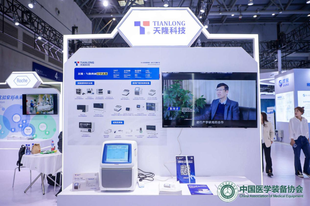作為本土誕生發(fā)展的民族企業(yè),天隆科技立足自主研發(fā),深耕基因檢測(cè)、分子診斷領(lǐng)域26載,突破系列“卡脖子”技術(shù)壁壘,形成一體化的高通量多靶標(biāo)核酸自動(dòng)化定量檢測(cè)系統(tǒng)解決方案和產(chǎn)品組合,并實(shí)現(xiàn)大規(guī)模的產(chǎn)業(yè)化成果應(yīng)用。本次展出的Gentier 96E全自動(dòng)醫(yī)用PCR分析系統(tǒng)、GeneRotex+全自動(dòng)核酸純化儀、iGencase 1600便攜式核酸檢測(cè)箱、Panall 8000全自動(dòng)多重病原體檢測(cè)分析系統(tǒng)等均是天隆科技科技創(chuàng)新的轉(zhuǎn)化成果,并且設(shè)備關(guān)鍵模塊實(shí)現(xiàn)了自研自產(chǎn),可靈活滿足用戶(hù)多樣化需求。天隆產(chǎn)品同步在醫(yī)學(xué)檢驗(yàn)展區(qū)和關(guān)鍵零部件展區(qū)列展亮相,吸引了諸多專(zhuān)家學(xué)者駐足交流。