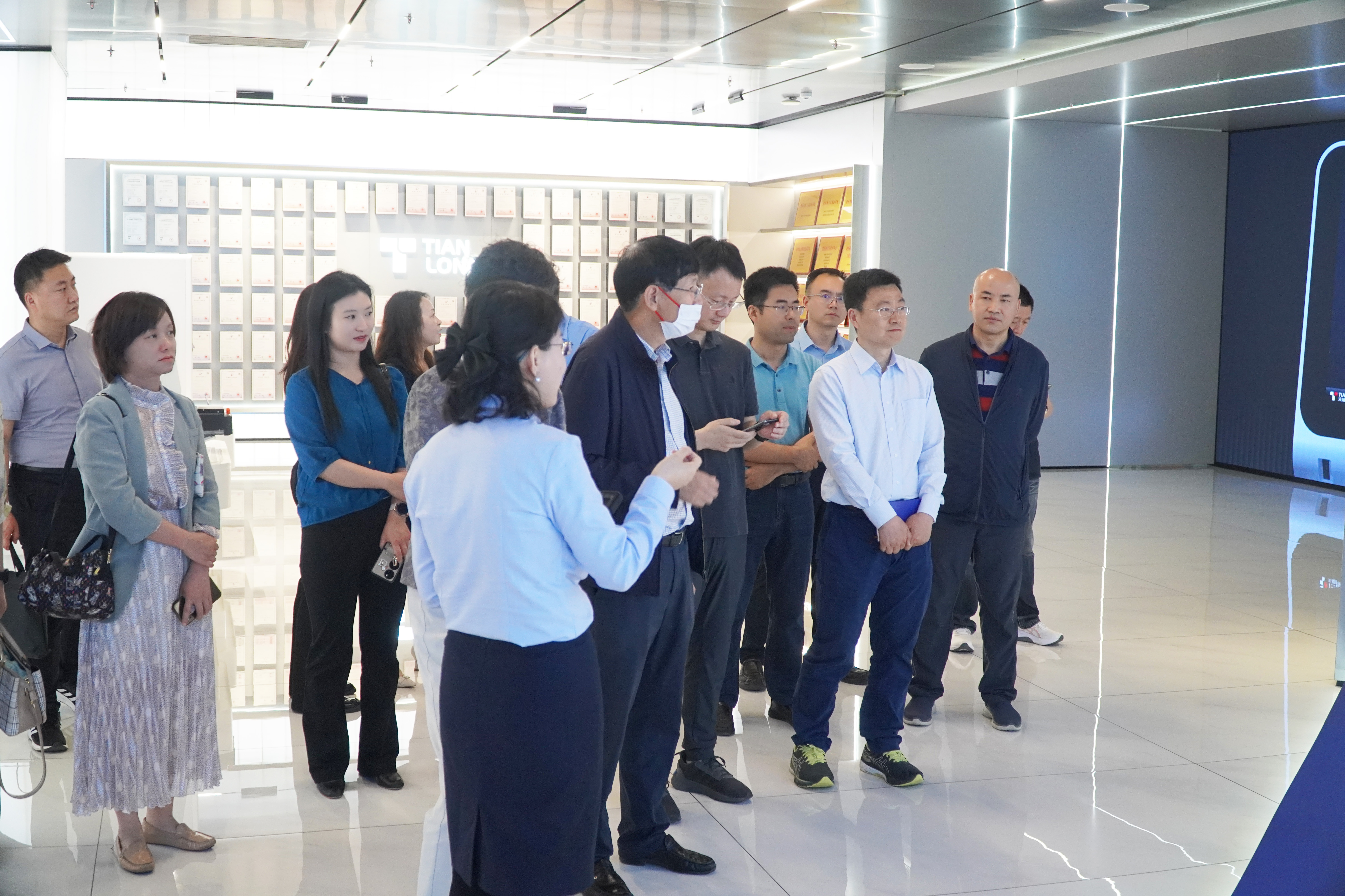 李靜莉所長一行重點(diǎn)參觀了公司展廳,從企業(yè)發(fā)展宣傳片到專利榮譽(yù)墻,再到天隆智造產(chǎn)品區(qū),通過公司講解人員的詳細(xì)介紹,切實(shí)感受了公司企業(yè)文化氛圍,并深入了解了公司發(fā)展歷程、產(chǎn)品體系及應(yīng)用領(lǐng)域、科技創(chuàng)新等方面取得的成績。