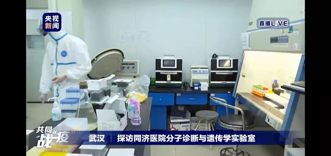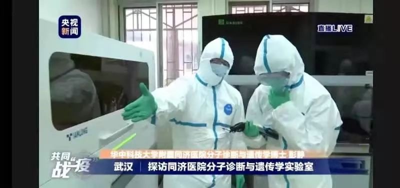 央視新聞拍攝天隆試劑儀器在武漢同濟(jì)醫(yī)院的使用情況。
