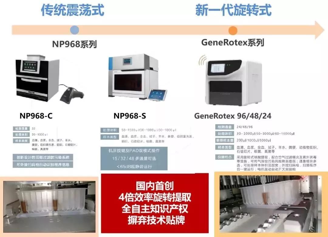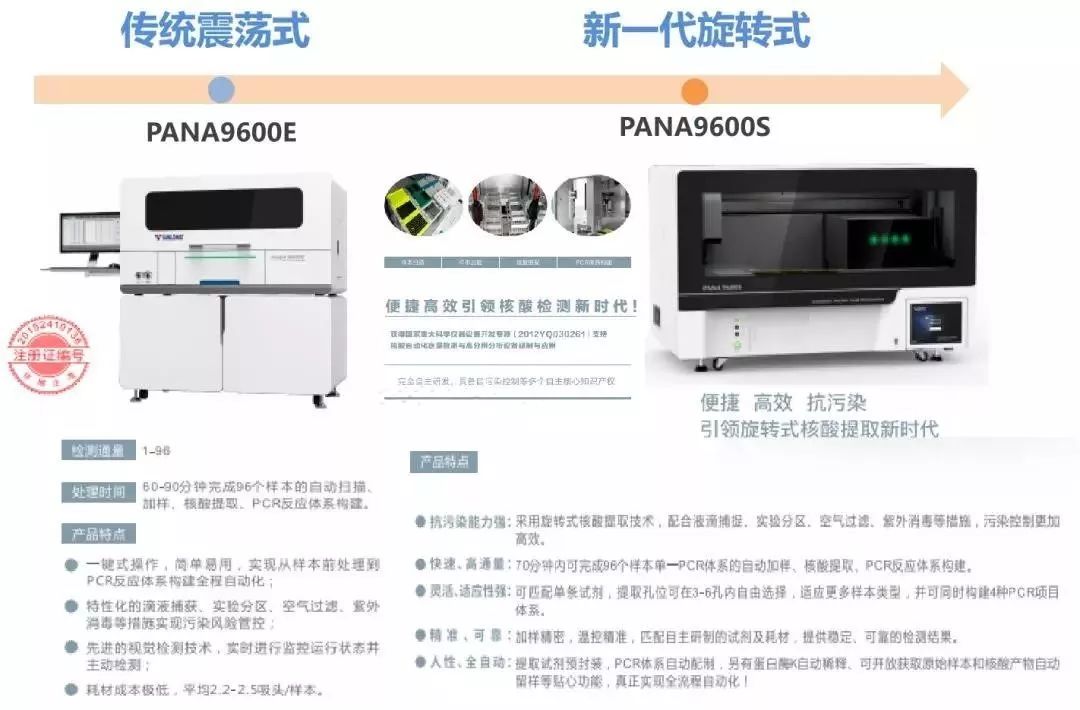 將滅活病毒后的樣本進(jìn)行核酸提取,產(chǎn)物用于后續(xù)檢測(cè)。可采用手工法,也可采用大通量的自動(dòng)化設(shè)備,如天隆NP968-C核酸提取儀、PANA9600E及PANA9600S全自動(dòng)化核酸檢測(cè)工作站等,更能降低操作人員被感染風(fēng)險(xiǎn)。