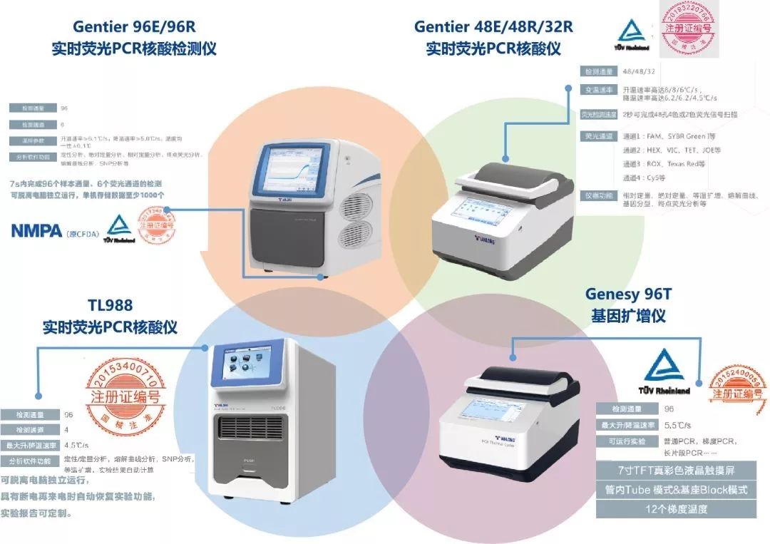 自疫情爆發(fā)后,天隆新型冠狀病毒核酸檢測(cè)試劑、實(shí)時(shí)熒光 PCR 儀、核酸提取儀、全自動(dòng)核酸檢測(cè)工作站已裝備了全國(guó)數(shù)百家醫(yī)院和疾控中心,助力疫情防控,天隆產(chǎn)品現(xiàn)已獲得了50余個(gè)醫(yī)療器械注冊(cè)證、5個(gè)CE認(rèn)證、2個(gè)CB認(rèn)證,10個(gè)韓國(guó)FDA認(rèn)證,5個(gè)國(guó)家重點(diǎn)新產(chǎn)品證書(shū)。試劑產(chǎn)品獲三類醫(yī)療器械注冊(cè)證26個(gè)(含應(yīng)急審批的埃博拉病毒檢測(cè)試劑),其中傳染病類18個(gè),獲證數(shù)量及市場(chǎng)占有率在國(guó)內(nèi)排名前列。