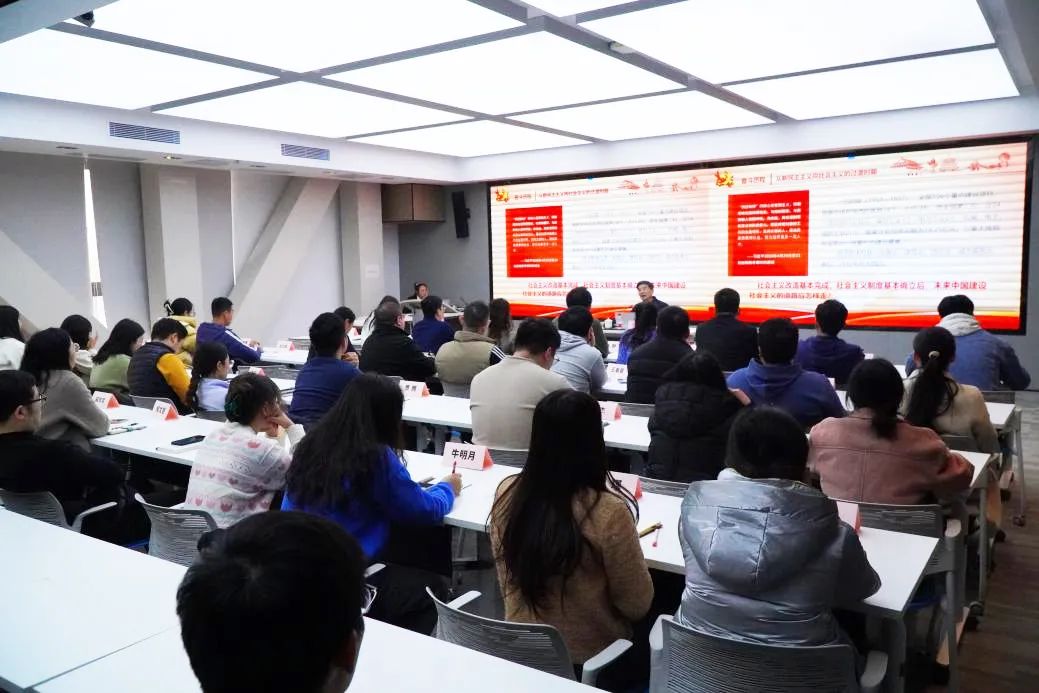 會議特別邀請了陜西省優(yōu)秀共產(chǎn)黨員,全國優(yōu)秀社會科學(xué)普及專家袁武振教授講授《黨在陜西百年奮斗的重大成就和歷史經(jīng)驗》專題黨課。袁教授系統(tǒng)地梳理了中國共產(chǎn)黨在陜西省的百年奮斗歷程,并從宏觀、中觀、微觀三個角度總結(jié)出黨領(lǐng)導(dǎo)陜西在四個歷史時期創(chuàng)造的重大成就,提煉總結(jié)了中國共產(chǎn)黨在陜西百年奮斗的歷史經(jīng)驗和現(xiàn)實啟示。現(xiàn)場學(xué)習(xí)氛圍濃厚熱烈,袁教授的講解妙趣橫生,讓抽象的歷史知識變得鮮活可感,獲得了黨員們的一致贊嘆,全體成員表示受益匪淺。