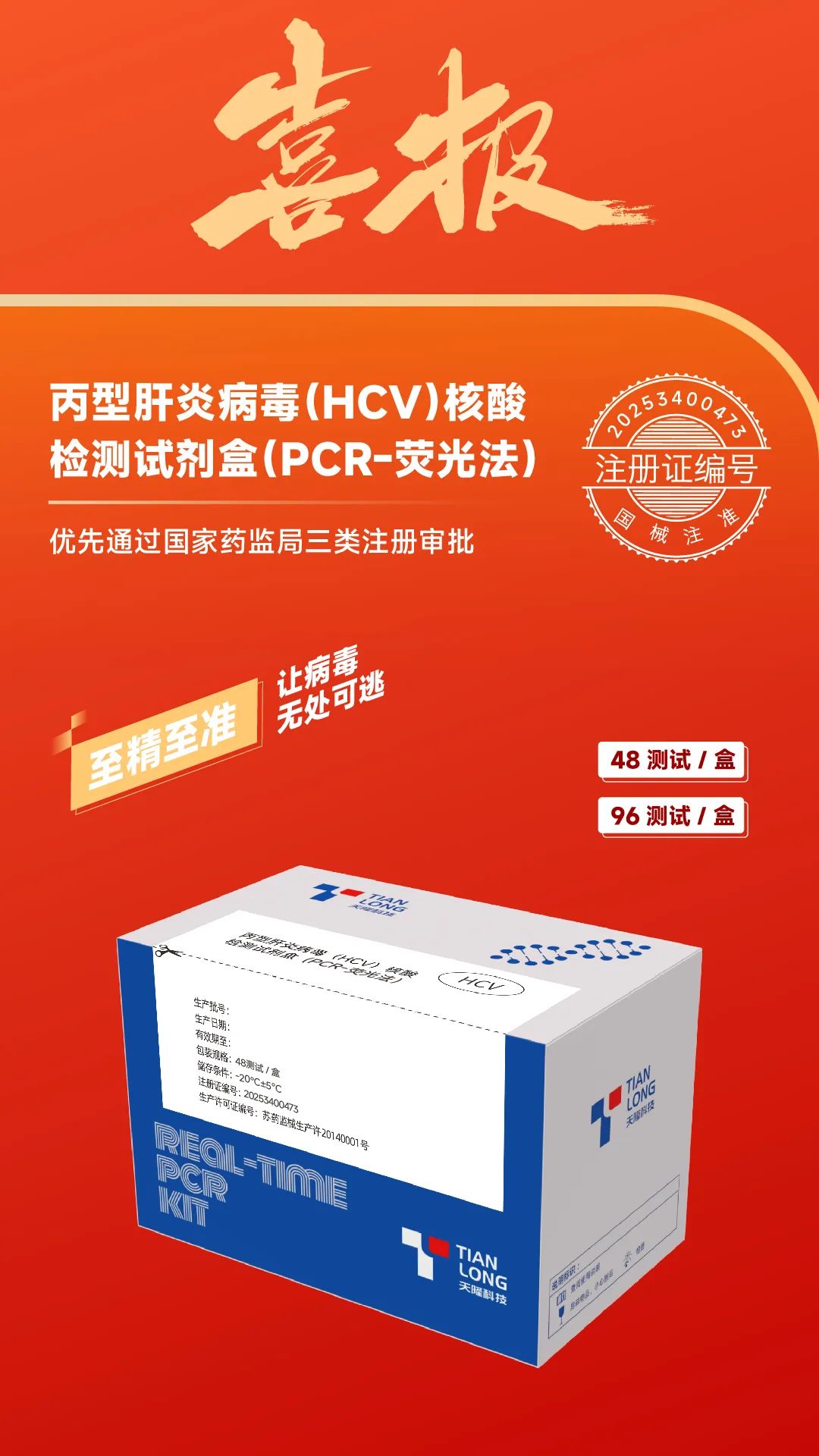 近日,天隆智造家族又添新成員,自主研發(fā)的超高敏丙型肝炎病毒(HCV)核酸檢測試劑盒(PCR-熒光法)通過國家藥監(jiān)局三類注冊!該試劑為天隆科技牽頭承擔(dān)的“十四五”國家重點(diǎn)研發(fā)計(jì)劃的戰(zhàn)略性轉(zhuǎn)化產(chǎn)品之一,此次為優(yōu)先通過NMPA審批,獲準(zhǔn)上市。