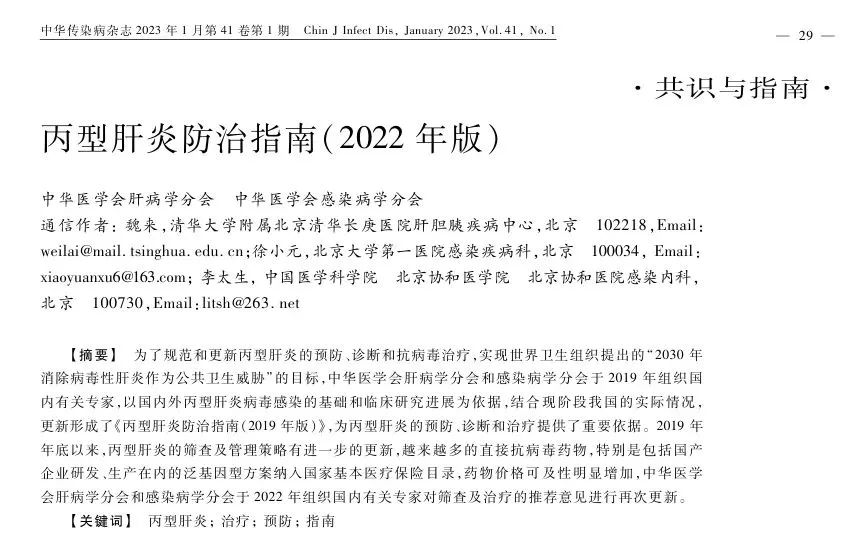 [2] 中華醫(yī)學(xué)會(huì)肝病學(xué)分會(huì), 中華醫(yī)學(xué)會(huì)感染病學(xué)分會(huì). 丙型肝炎防治指南(2022年版)[J]. 中華傳染病雜志2023, 41(1): 29-46.